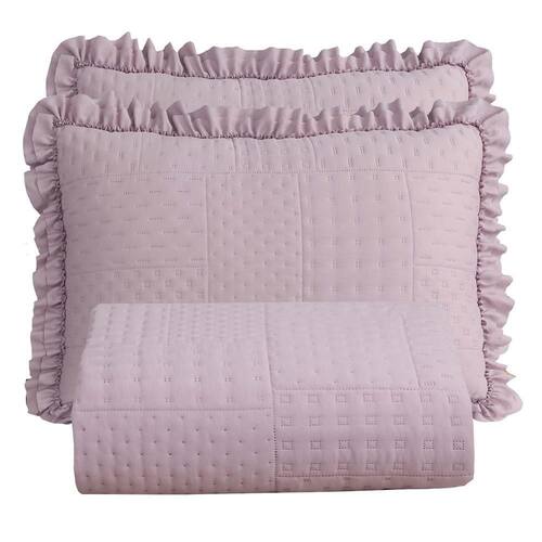 Kit Cobre Leito Colcha Maison Casal Padrão com Babado Percal 300 Fios 3 Peças - Roxo Malva