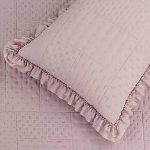 Seu design acolchoado matelado em padrão geométrico transmite sofisticação, enquanto os babados delicados nas bordas adicionam um toque clássico e romântico ao visual da sua cama. Além de decorar, o cobre leito é resistente, fácil de lavar e de secagem rápida, garantindo praticidade para o dia a dia.
