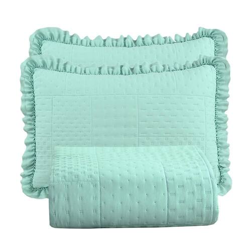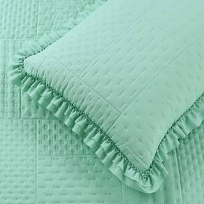 Kit Cobre Leito Colcha Maison Casal Padrão com Babado Percal 300 Fios 3 Peças - Verde Menta Transforme o ambiente do seu quarto com o Kit Cobre Leito Colcha Maison, uma peça que combina elegância, conforto e praticidade. Confeccionado em Percal de Poliéster 300 Fios com Toque de Algodão, este kit oferece uma textura suave e macia, perfeita para noites de sono aconchegantes.
