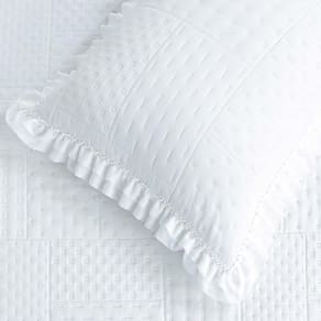 Seu design acolchoado matelado em padrão geométrico transmite sofisticação, enquanto os babados delicados nas bordas adicionam um toque clássico e romântico ao visual da sua cama. Além de decorar, o cobre leito é resistente, fácil de lavar e de secagem rápida, garantindo praticidade para o dia a dia.