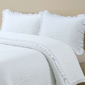 Kit Cobre Leito Colcha Maison King c/ Babado Percal 300 Fios 3 Peças - Branco - Única