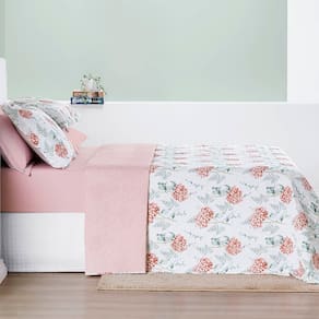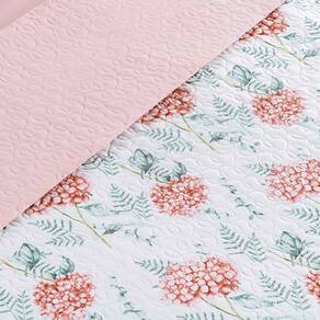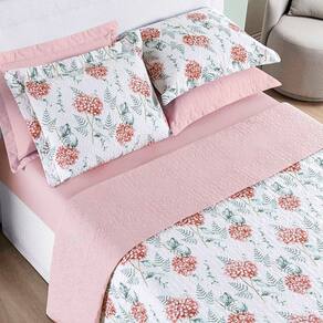 Kit Cobre Leito Colcha Maris Casal Padrão Estampado Dupla Face Percalle 200 Fios 3 Peças Hortênsia Salmão - Única