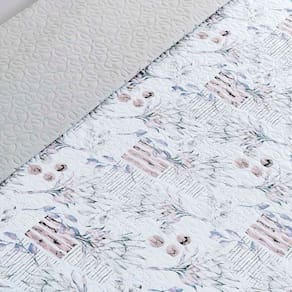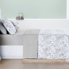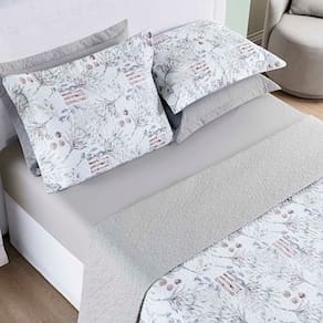 Kit Cobre Leito Colcha Maris Casal Padrão Estampado Dupla Face Percalle 200 Fios 3 Peças Protea Cinza - Única