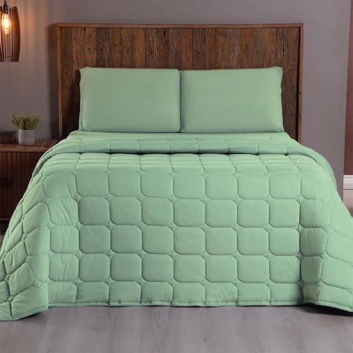 Kit Cobre Leito Colcha Minimal Casal 3 Peças Malha 100% Algodão - Verde