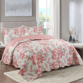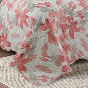 Kit Cobre Leito Colcha Mix Queen Estampado Dupla Face Floral 3 Peças - Cecília - Salmão - Única