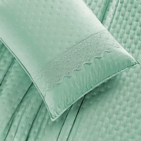 O acabamento matelado ultrassonic adiciona um toque de sofisticação e durabilidade, enquanto os porta-travesseiros com detalhes em laise bordado elevam o conjunto a um novo patamar de requinte. Cada detalhe foi cuidadosamente pensado para oferecer não apenas beleza, mas também funcionalidade e conforto.
