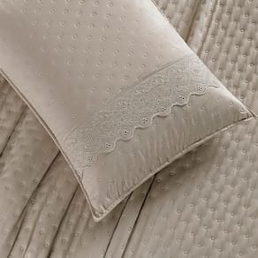 O acabamento matelado ultrassonic adiciona um toque de sofisticação e durabilidade, enquanto os porta-travesseiros com detalhes em laise bordado elevam o conjunto a um novo patamar de requinte. Cada detalhe foi cuidadosamente pensado para oferecer não apenas beleza, mas também funcionalidade e conforto.