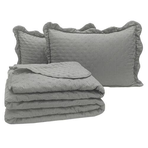 Kit Cobre Leito Colcha Perone King Dupla Face Toque de Pluma Micro Percal 300 Fios 3 Peças - Cinza - Única