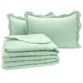 Kit Cobre Leito Colcha Perone Queen Dupla Face Toque de Pluma Micro Percal 300 Fios 3 Peças - Verde Tifany - Única
