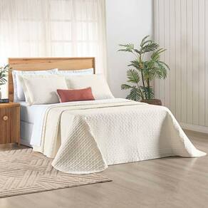 Kit Cobre Leito Colcha Quality Casal 3 Peças Percale 200 Fios Bordado - Palha