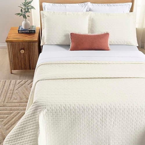 Kit Cobre Leito Colcha Quality Queen 3 Peças Percale 200 Fios Bordado - Palha