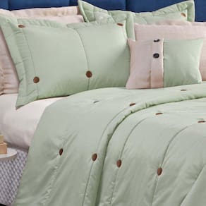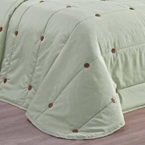 Kit Cobre Leito Colcha Queen Button 200 Fios Bordado 7 Peças - Verde - Única