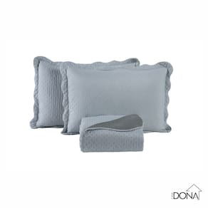 Kit Cobre Leito Colcha Queen Dupla Face Roma 3 Peças - Cinza