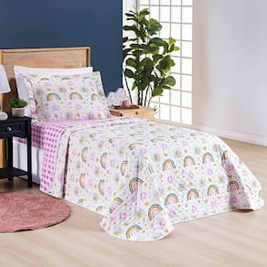 Kit Cobre Leito Colcha Solteiro Infantil Lutti Dupla Face 200 Fios 2 Peças Arco Íris Rainbow Rosa - Única
