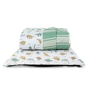 Kit Cobre Leito Colcha Solteiro Infantil Lutti Dupla Face 200 Fios 2 Peças Dinossauro Verde - Única