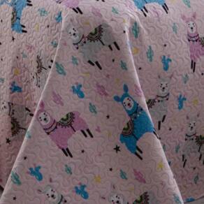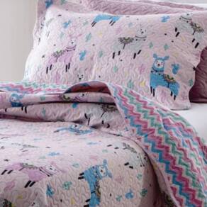 Kit Cobre Leito Colcha Solteiro Infantil Studio Dupla Face Estampado 2 Peças - Lhama - Rosa - Única
