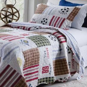 Kit Cobre Leito Colcha Solteiro Infantil Studio Dupla Face Estampado 2 Peças - Super Ball - Cinza - 100% Poliéster