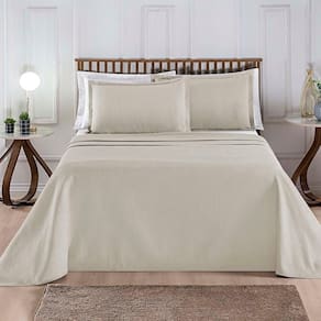 Os porta-travesseiros com aba americana complementam o conjunto, adicionando um toque de sofisticação e praticidade ao seu espaço. A alta qualidade do tecido piquet garante durabilidade, mantendo a beleza e a funcionalidade do cobre leito por muito mais tempo.