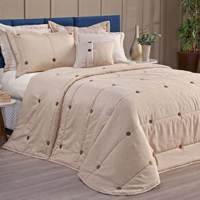 01 Cobre Leito Bordado 2,80 x 2,60m;02 Porta travesseiros Bordados 75cm x 55cm;02 Porta travesseiros 75cm x 55cm;01 Capa de Almofada 40cm x 40cm;01 Refil de Almofada 40cm x 40cm. Composição:Tecido Superior: 200 Fios - 100% Poliéster.