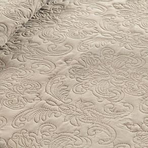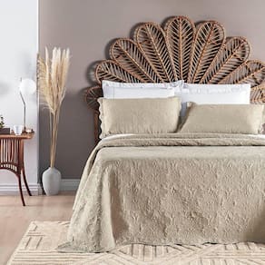 Design Sofisticado: O bordado em arabesco confere um toque de requinte, tornando o cobre leito uma peça-chave na decoração do seu quarto.