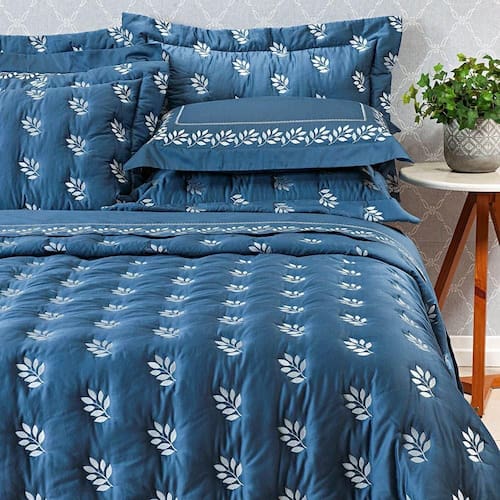 Kit Cobre Leito Colcha Garland Super King 100% Algodão 400 Fios Acetinado Bordado 5 Peças - Azul Marinho