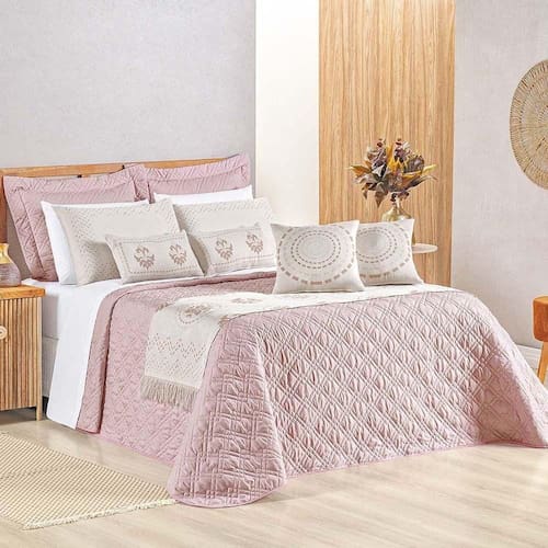 Kit Cobre Leito Colcha Tierry Queen 5 Peças Hipercal 180 Fios - Rose