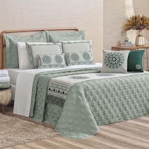 Kit Cobre Leito Colcha Tierry Queen 5 Peças Hipercal 180 Fios - Verde Malva