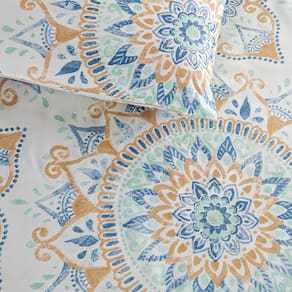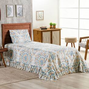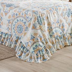 Kit Cobre Leito Colcha Turin Solteiro Estampada c/ Babado 400 Fios 2 Peças Mandala Azul Bege - Única