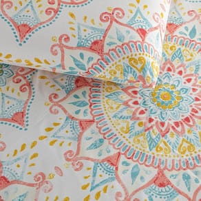Kit Cobre Leito Colcha Turin Solteiro Estampada c/ Babado 400 Fios 2 Peças Mandala Vermelha Bege - Única