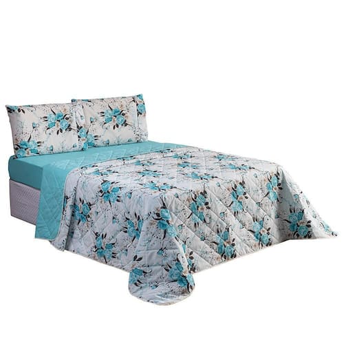 Kit Cobre Leito e Jogo de Lençol Casal 4 Peças Esmeralda 100% Algodão Percal Cor: Tiffany Apresentamos com orgulho a coleção Esmeralda da MR Enxovais, uma fusão perfeita de elegância e conforto para transformar o seu quarto em um refúgio de estilo. Cada peça é meticulosamente confeccionada com um tecido de alta qualidade, composto por 100% Algodão - Percal 150 Fios, garantindo uma experiência de sono luxuosa.