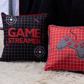 Kit Cobre Leito Game Streamer Dupla Face C/ Almofadas Solteiro 05pçs Vermelho - Única