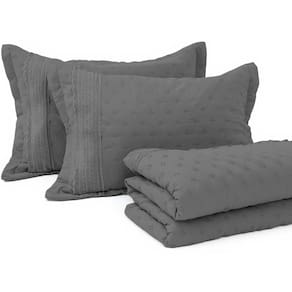 Kit Cobre Leito King 3 peças com Bordado Inglês Micro Percal Ultrassônico BF Colchões - Grafite | Cinza
