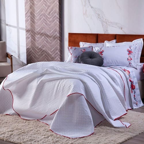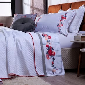 Confeccionado em tecido Microfibra 100% Políester, a nova Coleção Liz vem trazendo um toque macio, com portas estampados em acabamento debrum, o cobre leito com enchimento em manta dupla face, permitindo o uso dos dois lados. Com lindos detalhes nos porta-travesseiros matelados e na almofadinha estampada com viés, acompanhando também uma linda almofada redonda em veludo, aquele toque perfeito para trazer conforto e beleza na sua decoração. Tudo para combinar com a sua cama! Produzido num rigoroso controle de qualidade, dando um toque de requinte para o ambiente. Confira!