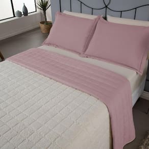 Kit Cobre Leito Matelado Dupla Face Sherpa De Carneiro 3 Peças Queen 80% Algodão - 20% Poliéster Percal 180 Fios Cor:ros - Rosa