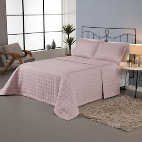 Quantidade de Peças e Medidas Aproximadas:01 Cobre Leito: 2,60m (largura) x 3,10m (altura)02 Porta Travesseiros: 70cm (comprimento) x 50cm (largura) com aba americanaMaterial e Composição:Tecido: 100% poliésterEnchimento (manta): 100% poliésterInformações Específicas:Matelado em Costura: Dá ao produto um visual moderno e Face: Permite o uso de ambos os lados, trazendo versatilidade ao Travesseiros com Aba Americana: Adiciona um toque sofisticado ao ível em Seis Cores: Perfeito para combinar com diferentes decoraçõção!A tonalidade da cor pode variar conforme o dispositivo de visualização.Informações Gerais:Material visual ilustrativo. Pequenas variações na cor podem ocorrer entre as imagens e o produto real.