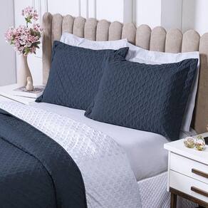 Design Sofisticado: O cobre leito e os porta travesseiros são adornados com um bordado moderno que cria uma textura única e um visual luxuoso.
