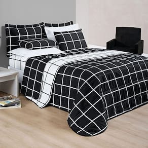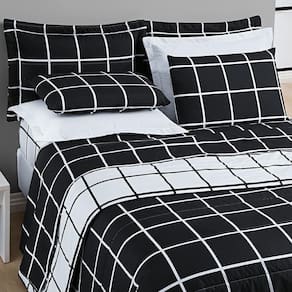 Vista sua cama com o mix de cores e padrões do Kit Minimalista Quadriculado. Levando idade e estilo para a sua decoração, o conjunto possui acabamento e estampas modernas. Além de beleza, o conforto dos seus momentos de descanso são garantidos com o tecido Micropercal 200 Fios.