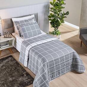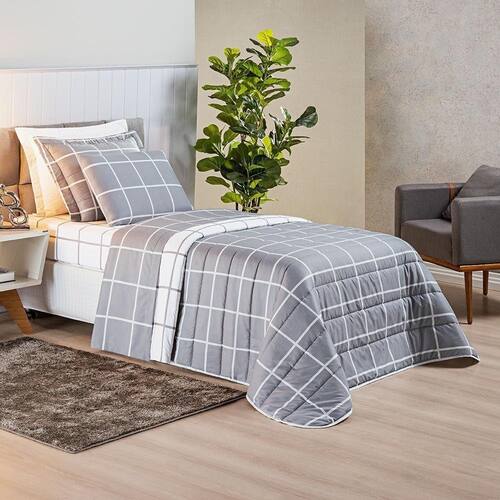 Esse cobre leito possui um design minimalista com estampa quadriculada em ambas as faces, o que o torna uma opção dupla face, permitindo que você alterne entre os lados de acordo com sua preferência ou decoração. Essa versatilidade possibilita renovar o visual do ambiente com facilidade.