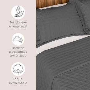 Com detalhes de bordado inglês nas laterais, e acabamento ultrassônico com textura em baixo-relevo, para deixar sua cama ainda mais charmosa. O tecido micro percal 100% poliéster, tem toque ultra macio, com aquela sensação gostosa de aconchego desde o primeiro uso.