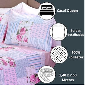 Kit Cobre Leito Queen 3 Peças Dupla Face Bouti Garden Variação: Patchwork Rosa Olá Seja bem-vindo a à Atual Ecommerce, sua loja de confiança para transformar seu lar em um espaço ainda mais acolhedor. Apresentamos o Kit 3 Peças Cobre Leito Casal Queen Bouti Garden - a união perfeita de conforto, beleza e praticidade para o seu quarto. Se você já se sentiu insatisfeito a com roupas de cama sem graça ou difíceis de lavar, vai adorar este kit. Ele é confeccionado em microfibra de alta qualidade, dupla face para mais combinações e fácil manutenção. Por que escolher o Kit Bouti Garden Versatilidade: Dupla face para mudar o visual do quarto em segundos. Qualidade comprovada: Clientes elogiam a durabilidade e o toque macio. Decoração com charme: A estampa floral delicada transforma o ambiente. Especificações Técnicas: 01 Cobre Leito Queen: 2,40m x 2,50m 02 Porta-travesseiros: 70cm x 50cm Superior: Microfibra estampada 100% poliéster Manta: 100% poliéster Inferior: 100% polipropileno Fácil de lavar e secagem rápida Indicado para cama Casal Queen : 3 meses contra defeitos de fabricação - segurança e confiança para sua compra. Não perca a oportunidade de renovar seu quarto com sofisticação e praticidade. limitado - garanta já o seu Kit Bouti Garden e sinta a diferença na sua decoração e conforto Agradecemos a sua visita e boas compras Características do produto: Dupla face Estampa floral exclusiva Conforto térmico Fácil manutenção Alta durabilidade Características técnicas do produto: Microfibra 100% poliéster Acabamento resistente Tamanho Queen Secagem rápida Leve e confortável Conteúdo da embalagem: 01 Cobre Leito Queen 2,40m x 2,50m 02 Porta-travesseiros 70cm x 50cm