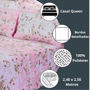 Kit Cobre Leito Queen 3 Peças Dupla Face Bouti Garden Variação: Lírio Rosa Olá Seja bem-vindo a à Atual Ecommerce, sua loja de confiança para transformar seu lar em um espaço ainda mais acolhedor. Apresentamos o Kit 3 Peças Cobre Leito Casal Queen Bouti Garden - a união perfeita de conforto, beleza e praticidade para o seu quarto. Se você já se sentiu insatisfeito a com roupas de cama sem graça ou difíceis de lavar, vai adorar este kit. Ele é confeccionado em microfibra de alta qualidade, dupla face para mais combinações e fácil manutenção. Por que escolher o Kit Bouti Garden Versatilidade: Dupla face para mudar o visual do quarto em segundos. Qualidade comprovada: Clientes elogiam a durabilidade e o toque macio. Decoração com charme: A estampa floral delicada transforma o ambiente. Especificações Técnicas: 01 Cobre Leito Queen: 2,40m x 2,50m 02 Porta-travesseiros: 70cm x 50cm Superior: Microfibra estampada 100% poliéster Manta: 100% poliéster Inferior: 100% polipropileno Fácil de lavar e secagem rápida Indicado para cama Casal Queen : 3 meses contra defeitos de fabricação - segurança e confiança para sua compra. Não perca a oportunidade de renovar seu quarto com sofisticação e praticidade. limitado - garanta já o seu Kit Bouti Garden e sinta a diferença na sua decoração e conforto Agradecemos a sua visita e boas compras Características do produto: Dupla face Estampa floral exclusiva Conforto térmico Fácil manutenção Alta durabilidade Características técnicas do produto: Microfibra 100% poliéster Acabamento resistente Tamanho Queen Secagem rápida Leve e confortável Conteúdo da embalagem: 01 Cobre Leito Queen 2,40m x 2,50m 02 Porta-travesseiros 70cm x 50cm Marca: Não Informado