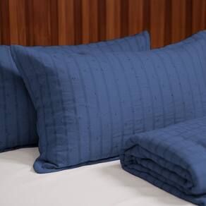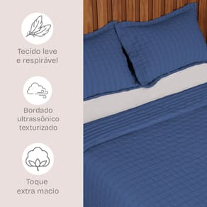Tecido: Micro percal 100% poliéster Textura Anarruga com Visual Ondulado Enchimento: Microfibra de poliéster Acabamento: Matelassê ultrassônico com textura em baixo-relevo