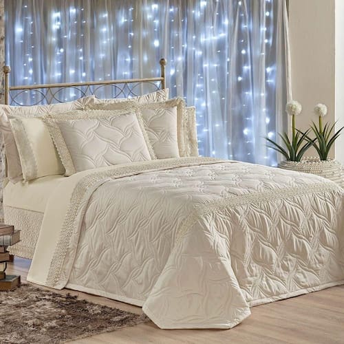 01 Cobre Leito Queen: 2,60m (Comprimento) x 2,60m (Largura) (MATELASSÊ COSTURADO)
