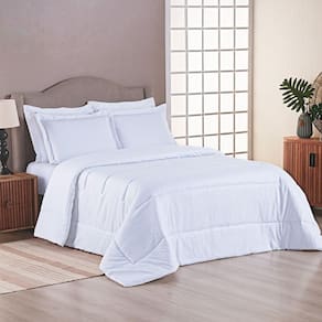 Cama Completa e Aconchegante: O acabamento matelassado deixa as peças mais volumosas e o kit já acompanha dois porta travesseiros para uma cama posta completa.