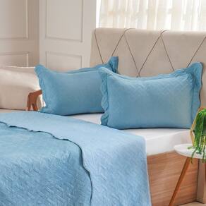 Kit Cobre Leito Solteiro Ultra Lisse Lisa New 160x220cm Azul Estonado -
