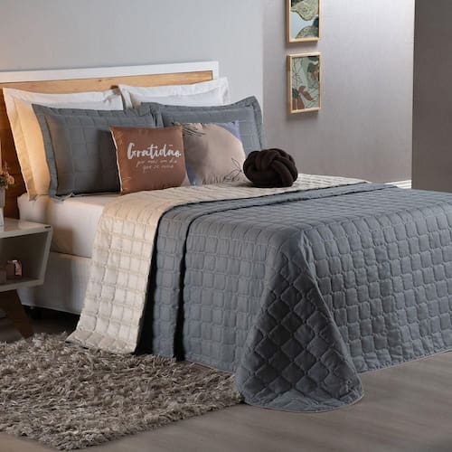 Kit Cobre Leito Sonho Queen 08 Peças Barato - Cinza - Bege