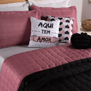 Kit Cobre Leito Sonho Queen 08 Peças Barato - Preto - Rosê - Rosa