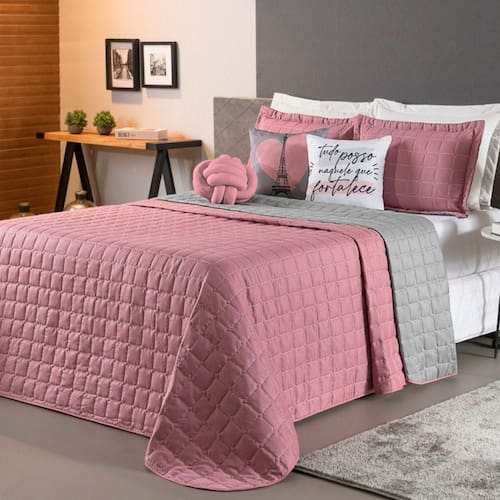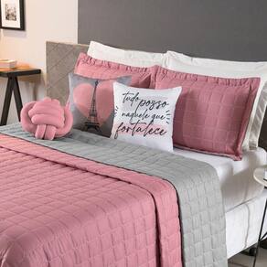 Kit Cobre Leito Sonho Queen 08 Peças Barato - Rosê - Cinza