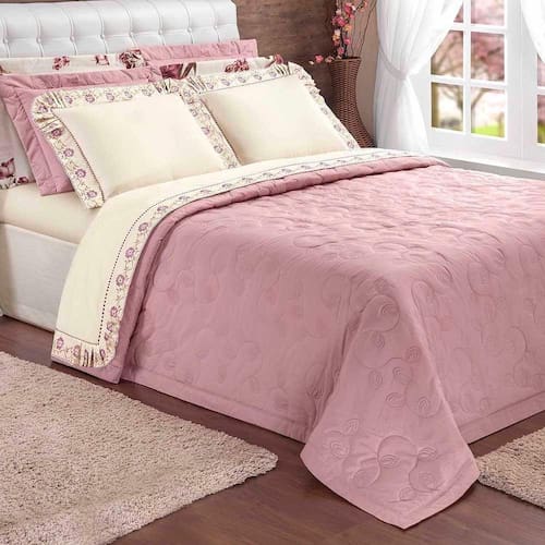 O Kit Cobre Leito Yasmin da Coleção bordada em tecido de algodão rosê é uma opção encantadora para a decoração do seu quarto. O cobre leito apresenta um belo bordado em detalhes delicados, que adicionam um toque de elegância e sofisticação ao conjunto. Feito em tecido de algodão, o kit proporciona conforto, maciez e uma sensação agradável ao toque. Além disso, o tecido de algodão é conhecido por sua durabilidade e facilidade de cuidado. Com o Kit Cobre Leito Yasmin, você pode criar um ambiente aconchegante e charmoso, onde poderá desfrutar de noites de sono tranquilas e relaxantes.