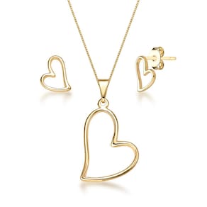 Kit Colar Brinco Pingente Coração Joias Folheada a Ouro 18k